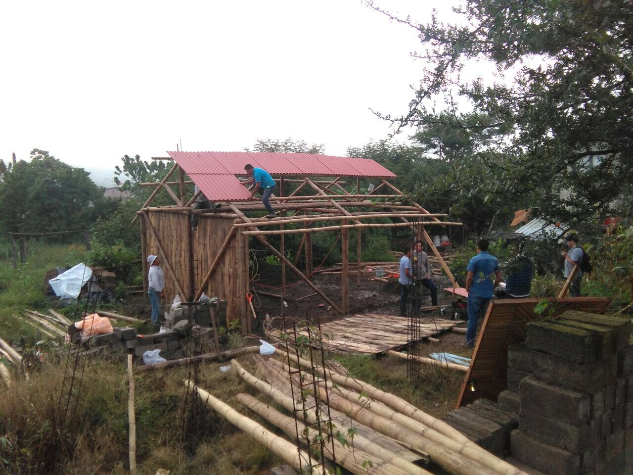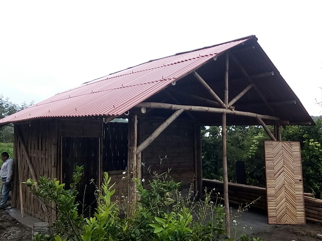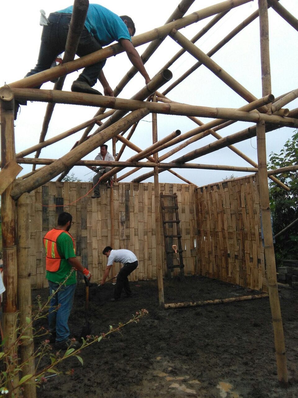 La primera casa de bambú construida por los voluntarios de la Tosepan