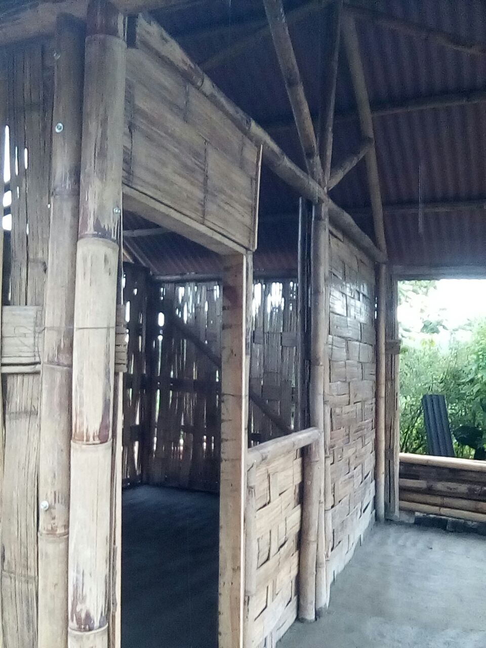 esta obra con el bambú, las láminas y los materiales que trajeron